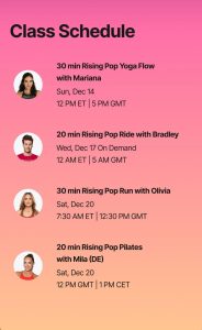 - 20 min Rising Pop Pilates with Mila (DE) 12/20 @12pm GMT 1pm CET
