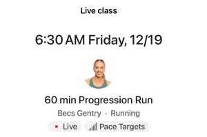 Get ready for your next long run with Becs! She’s got 60 minutes of Progression work ready for you on December 19 at 6:30am. That’ll wake you up in the morning!