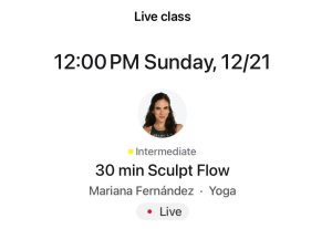 Join Mariana in her new Sculpt Flow class on Sunday, December 21 at noon. When we first reviewed this class type, and noticed it now was the main filter button replacing “Yoga Conditioning,” if both types of workouts would still be on the roster moving forward. Seems like no, but we are guessing Mariana’s will make some minor adjustments and continue to bring the heat just as she did in the previous iteration of this work.