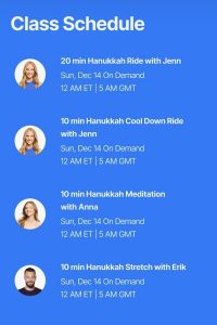 Peloton released their annual Hanukkah classes on Sunday 12/14 (conveniently also the first night of the holiday this year!). Catch these On Demand classes and selected drops sprinkled throughout the weekly schedule, and find them all in the Jewish Holidays Collection.