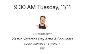 Peloton’s stalwart roster of Veteran’s Day class instructors is back again to add to this important Collection. Missing this year will be Collection regular Selena, who is off the schedule until Spring as she prepares for her twins, but we are confident that Logan, Christine and Marcel will deliver powerful classes! Join Logan for Strength at 9:30am ET, CDE for her ride at 10am ET, and Marcel for her run at noon ET.