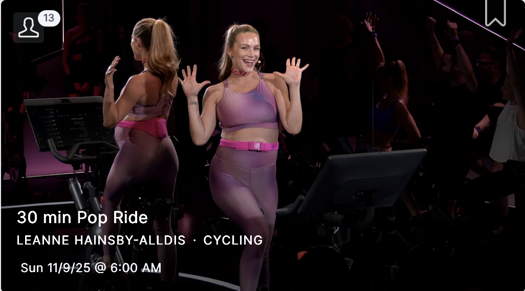 - 11/09/2025 30 Minute Pop Ride with Leanne Hainsby-Alldis